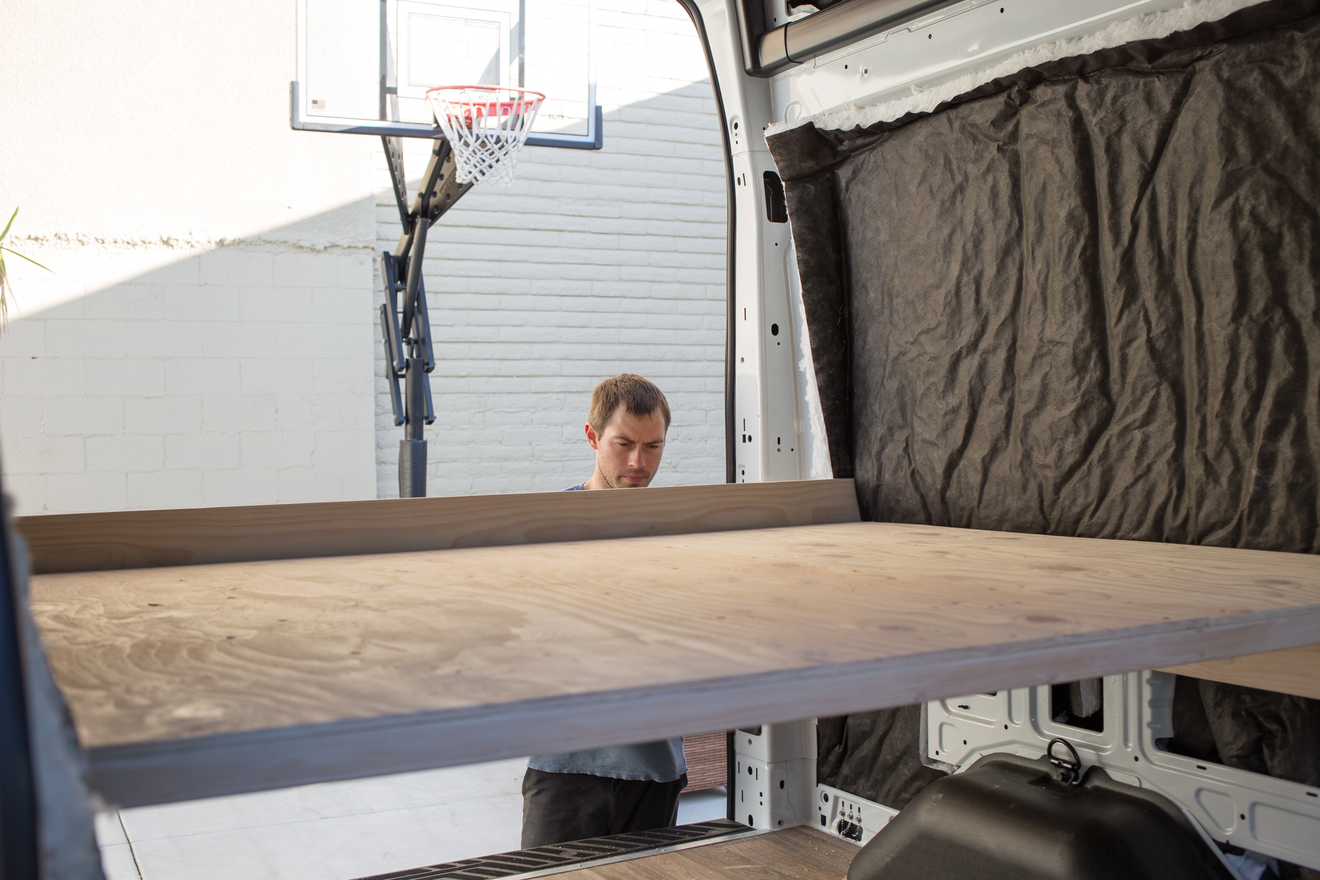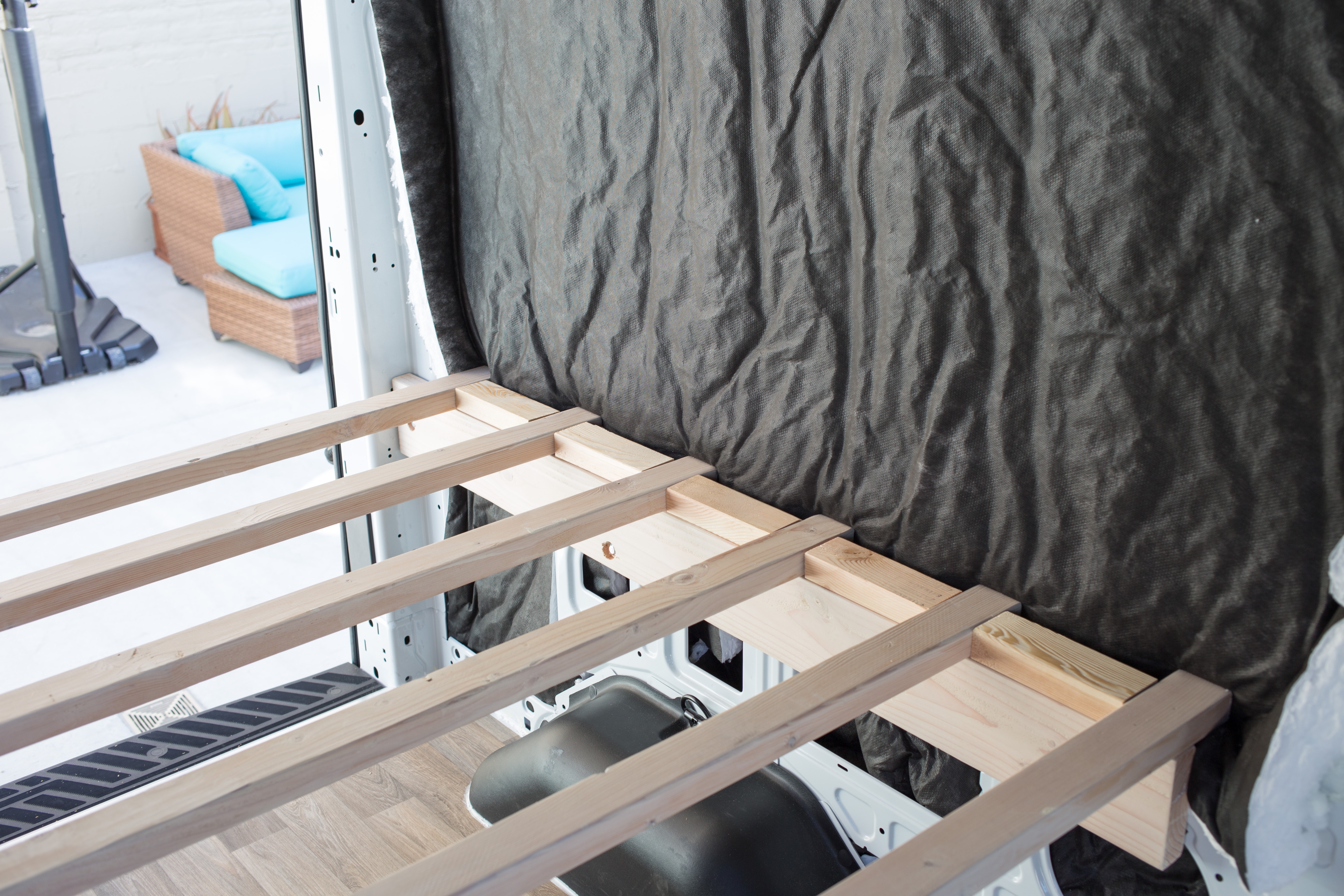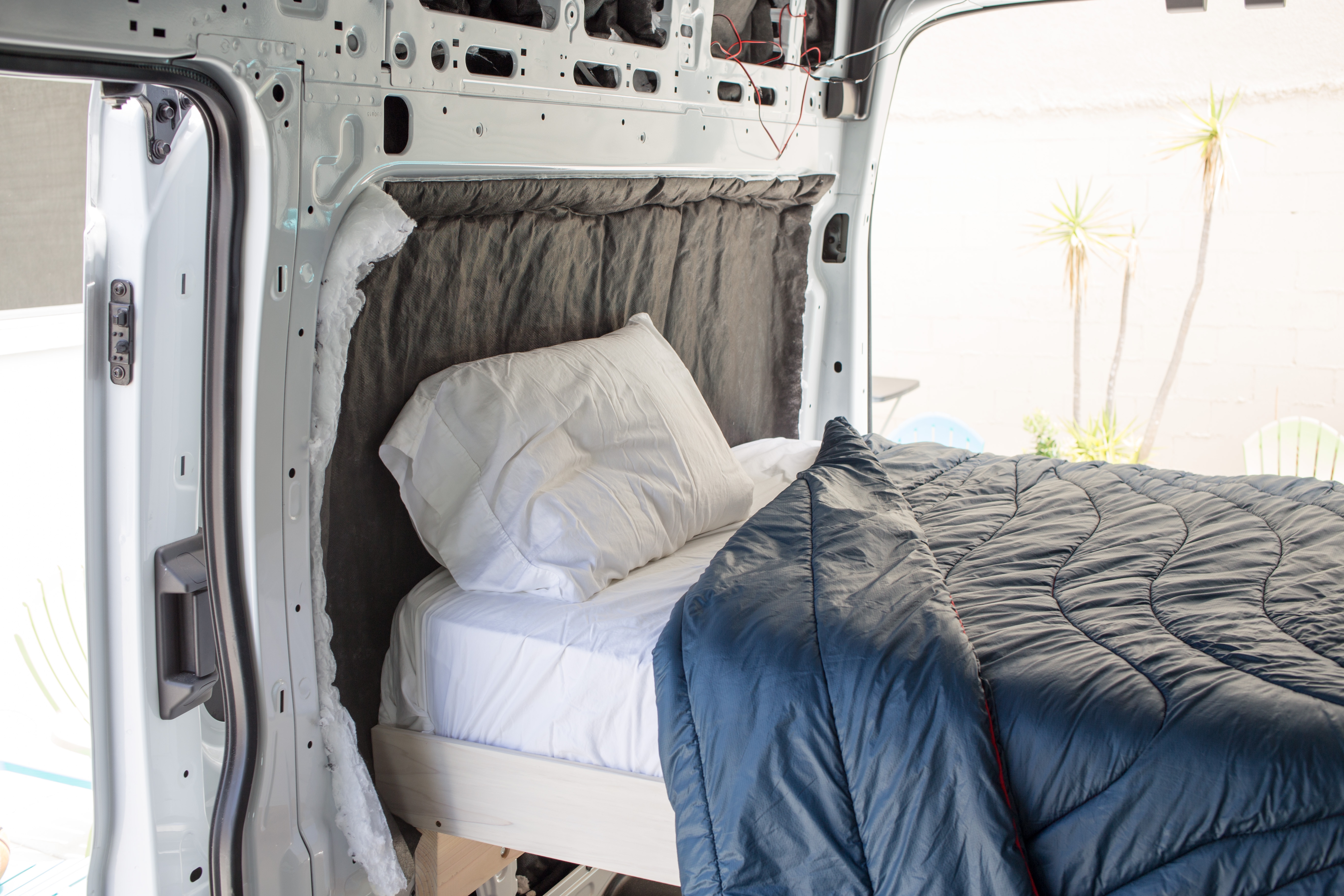 Another thing we need to figure out is how to cover the insulation. We can’t really put wood paneling up as the mattress needs all the space it can get.