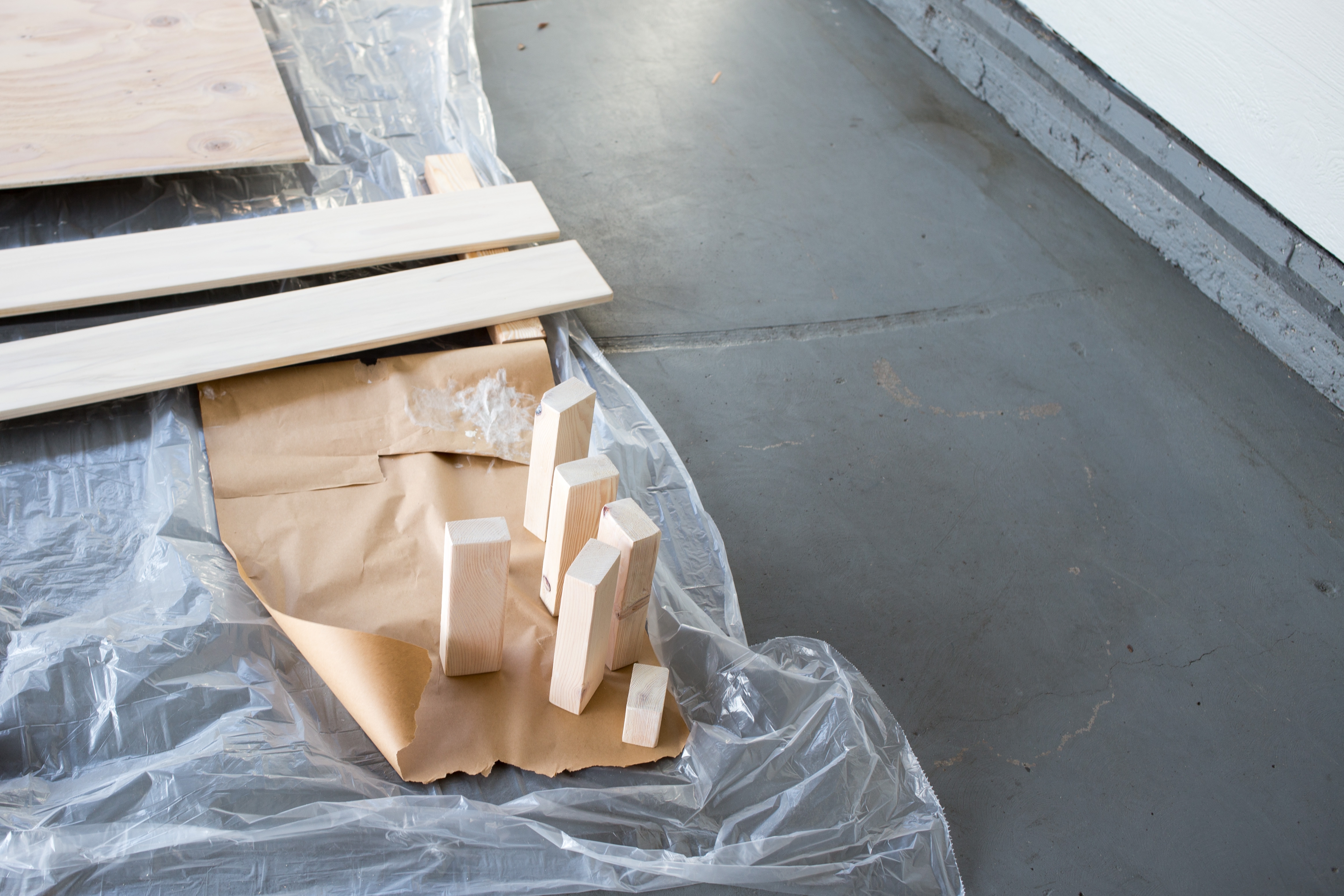 Before we mounted the 2x6s for good, we sanded them and applied a layer of wood stain for protection.