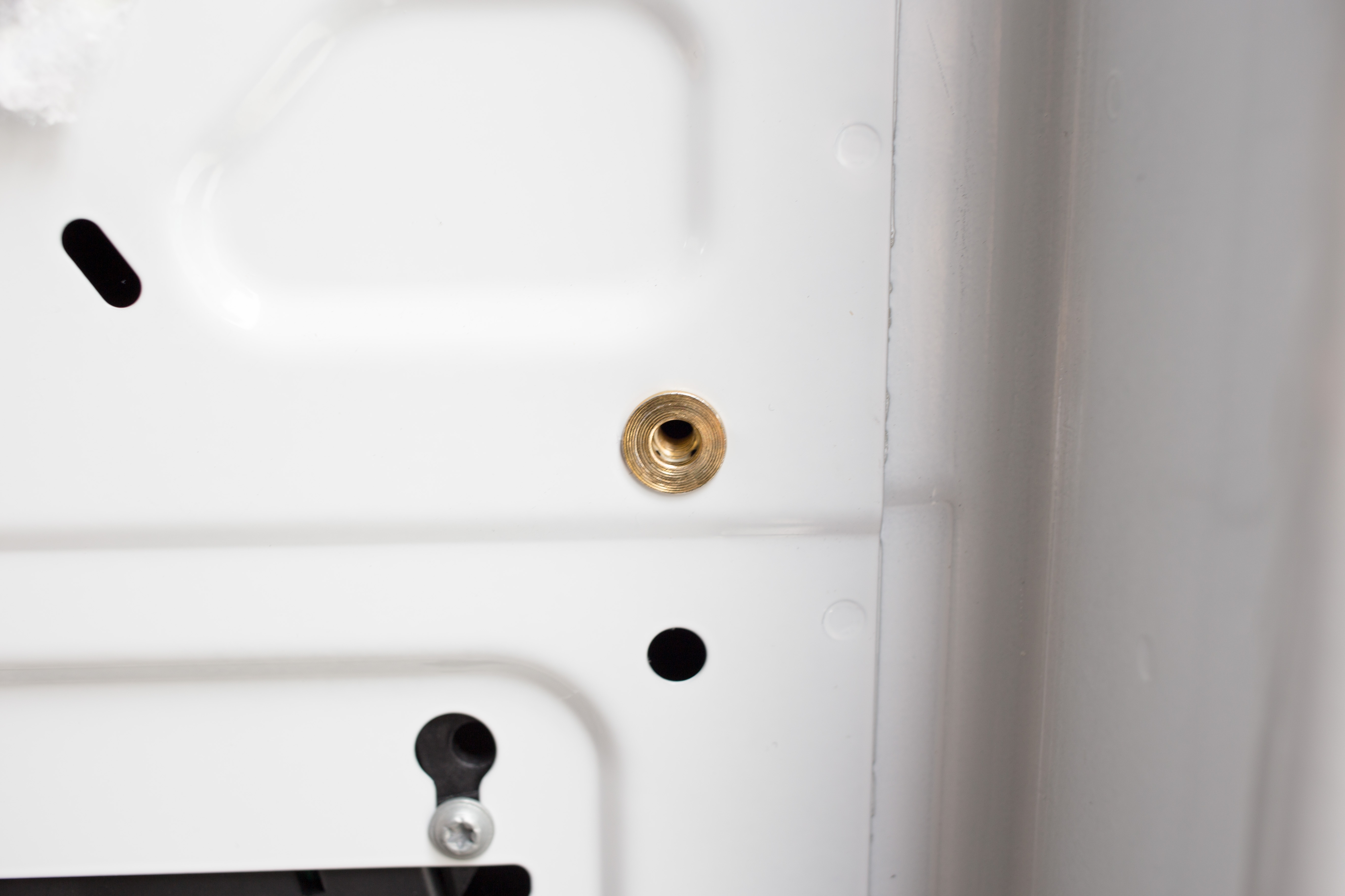 To support the 2×6 at the rear edge we installed pre-bulbed plusnuts into the existing holes.